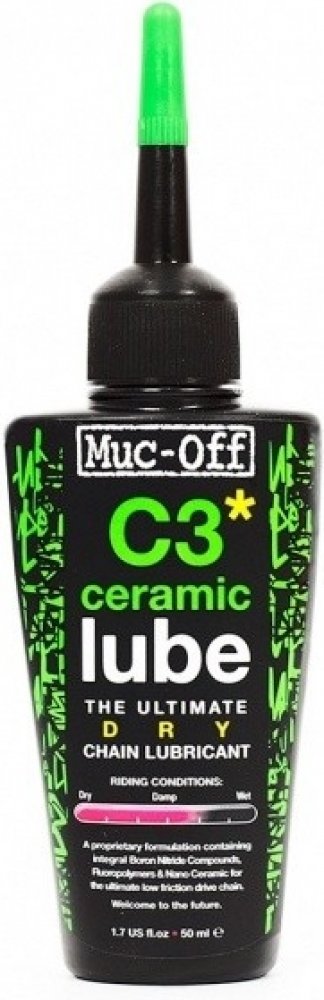 Muc-Off C3 Ceramic Lube je mazivo, které vás uvádí do budoucnosti. Jeho patentované složení dosahuje neuvěřitelného poměru odolnosti a velmi nízkého tření. Sloučenina nitridu boritého má totiž strukturu grafitu a společně s diamantem patří v současné době k nejtvrdším známým látkám. Odolnost C3 je dále vylepšena fluoropolymery.