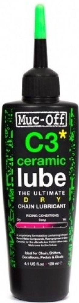 C3 Lube Dry 50 ml.Muc-Off C3 Ceramic Lube je mazivo, které vás uvádí do budoucnosti. Jeho patentované složení dosahuje neuvěřitelného poměru odolnosti a velmi nízkého tření. Sloučenina nitridu boritého má totiž strukturu grafitu a společně s diamantem patří v současné době k nejtvrdším známým látkám. Odolnost C3 je dále vylepšena fluoropolymery.Specifikace Muc Off C3 Ceramic Lube Dry 120ml patento...