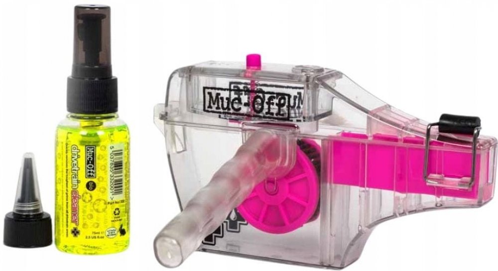 Drsné čistící zuby a rotující kolečka s kartáčky, které predstavují 120 kontaktních bodů, pokrývají celou plochu řetězu a zajištují jeho čištení skrz a do hloubky. Přebytek špinavé kapaliny je odváděn do druhé níže uložené nádobky a od již čišteného řetězu (na rozdíl od ostatních podobných mechanismů, které tak čištený řetěz znecištují). Muc-Off Muc-Off Dirvetrain Cleaner je plně biologicky odbouratelný produkt, tak že v případě, pokud jste k mazání řetězu použili i plně biologicky odbouratelné mazivo, může být zcela bezpecně likvidován jeho vylitím do kanalizace.