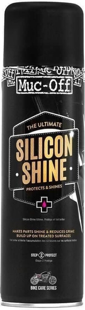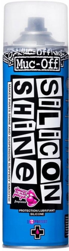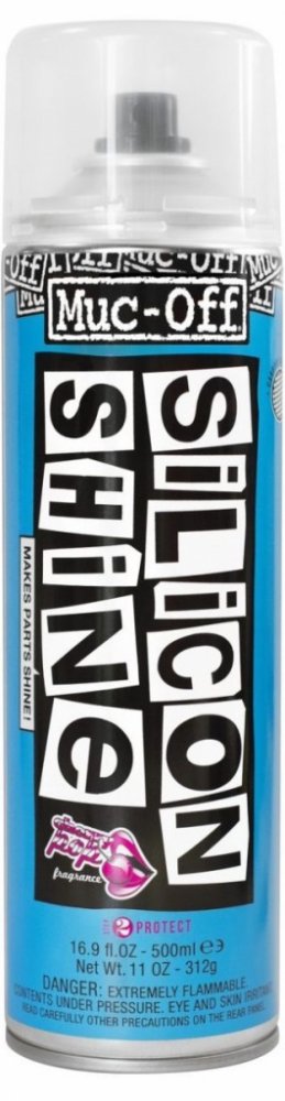 Muc-Off Silicon Shine je zcela bezpečný k lakovaným, chromovým a kovovým partiím, ke carbonovým dílům a jiným kompozitům. Nerozežírá ani nezměkčuje gumové a plastové díly, jako to dělají některé jiné hydrocarbonové spreje.
