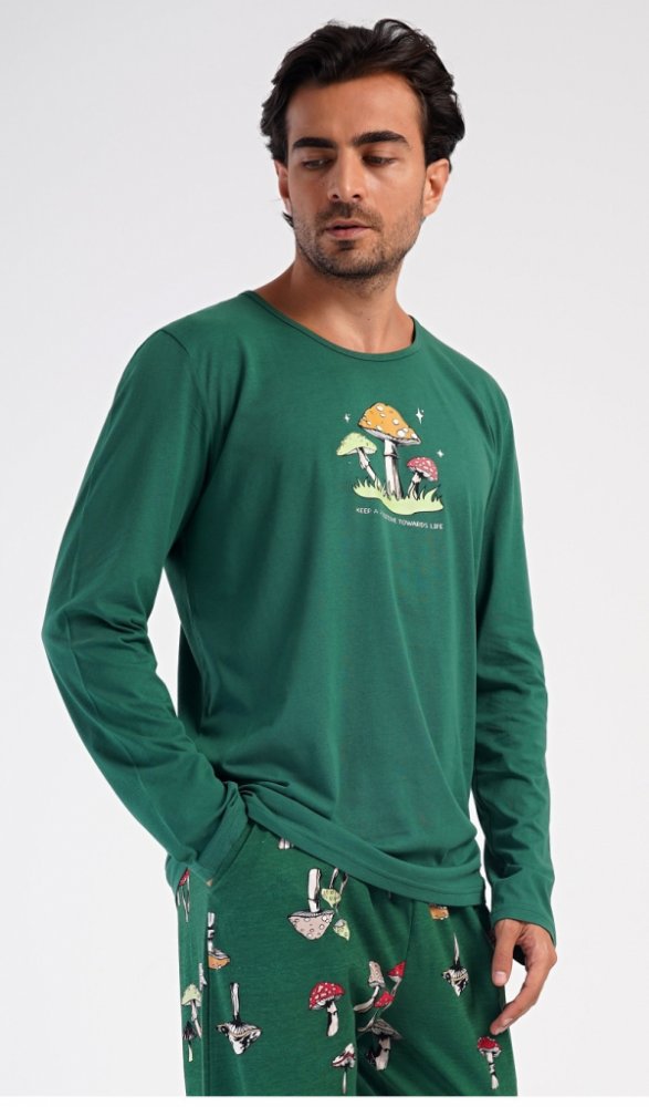 Muchomůrky pánské pyžamo dlouhé tm.zelené