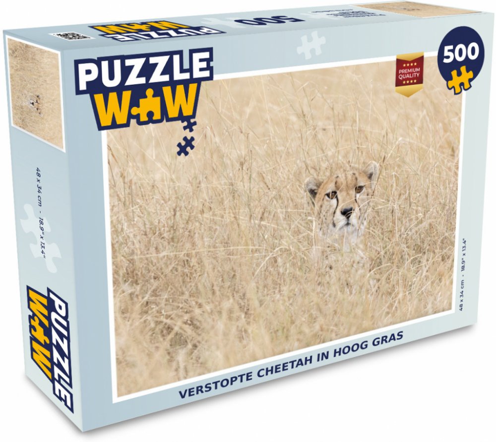 Atributy produktuPuzzle je vyrobeno z pevného kartonu a má jasné barvy.K dispozici je puzzle s 500 nebo 1000 dílky98,9 % zákazníků hodnotí PuzzleWow kladně!Puzzle s 500 dílkyPoměr ceny a kvality tohoto puzzle od PuzzleWow je jeden z nejlepších, ne-li nejlepší na trhu. Puzzle je vyrobeno z kvalitního kartonu, a proto vydrží dlouhá léta. Toto puzzle obsahuje 500 dílků a je příjemnou výzvou pro opravdové milovníky puzzle.Obrázek puzzle je na dílcích vytištěn v nejvyšším rozlišení, což zaručuje ostré puzzle s jasnými barvami. Puzzle jsou k dispozici v různých velikostech a v různém množství dílků (500 nebo 1000 dílků). Vybírat můžete z tisíců různých motivů a obrázků PuzzleWow.O obrázku: Ztvárnění geparda, který se velmi bojí predátora. Rychle se ukryl ve vysoké trávě, na kterou se opatrně dívá před sebe.
