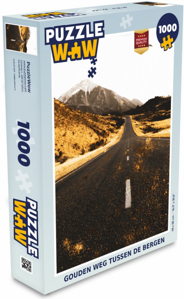Atributy produktuPuzzle je vyrobeno z pevného kartonu a má jasné barvy.K dispozici je puzzle s 500 nebo 1000 dílky98,9 % zákazníků hodnotí PuzzleWow kladně!Puzzle s 1000 dílkyPoměr ceny a kvality tohoto puzzle od PuzzleWow je jeden z nejlepších, ne-li nejlepší na trhu. Puzzle je vyrobeno z vysoce kvalitního kartonu, a proto vydrží mnoho let. Toto puzzle obsahuje 1000 dílků a je příjemnou výzvou pro opravdové milovníky puzzle.Obrázek puzzle je na dílcích vytištěn v nejvyšším rozlišení, což zaručuje ostré puzzle s jasnými barvami. Puzzle jsou k dispozici v různých velikostech a v různém množství dílků (500 nebo 1000 dílků). Vybírat můžete z tisíců různých motivů a obrázků PuzzleWow.O obrázku:obraz zlaté dlouhé cesty vedoucí k vysoké hoře.