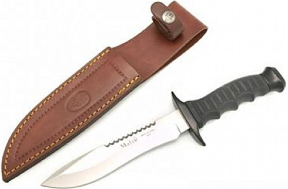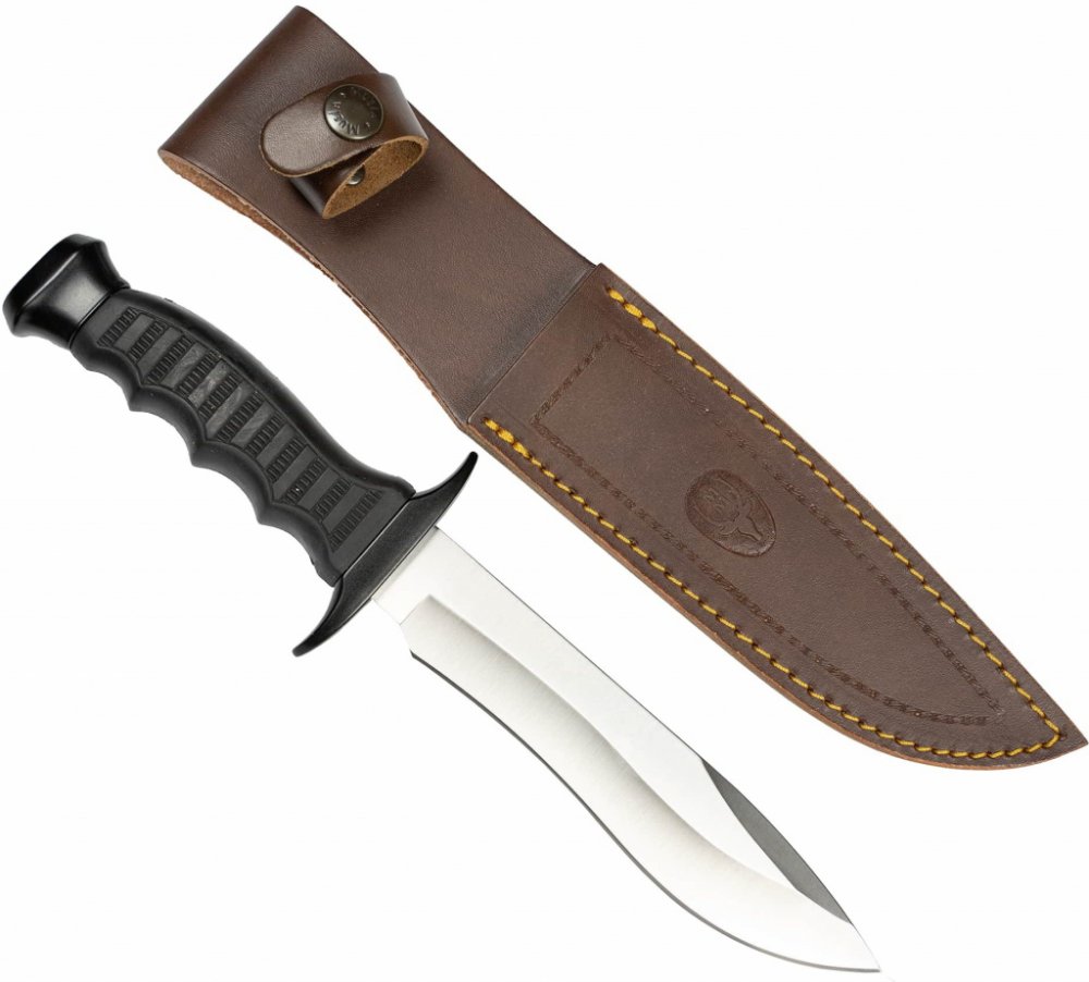 cepel - 190 mm strenka - 125 mm, paroží váha - 470 g kožené pouzdro Za téměř 60 let existence se stala Muela jedním z předních evropských výrobců klasických loveckých nožů. Rodinný podnik byl založen v roce 1952 Eladio Muela, dnes ho společně řídí všech jeho 5 dětí. Od začátků v prvních malé dílny se Muela změnila v high-tech výrobce s roční produkcí zhruba 350.000 nožů. Ale i přes moderní počítačem řízenou výrobu, ruční práce je stále jednou z hlavních priorit na dnešních Muela nožích. Zejména komplexní zpracování rohu, jedne ze specialit Muely nemůže být provedeno automaticky. Vyžaduje dlouhodobé zkušenosti expertů, kteří připravují a montují rukojeti ručně. Společnost také klade velký důraz na použití vysoce-kvalitních domácích a exotických dřev