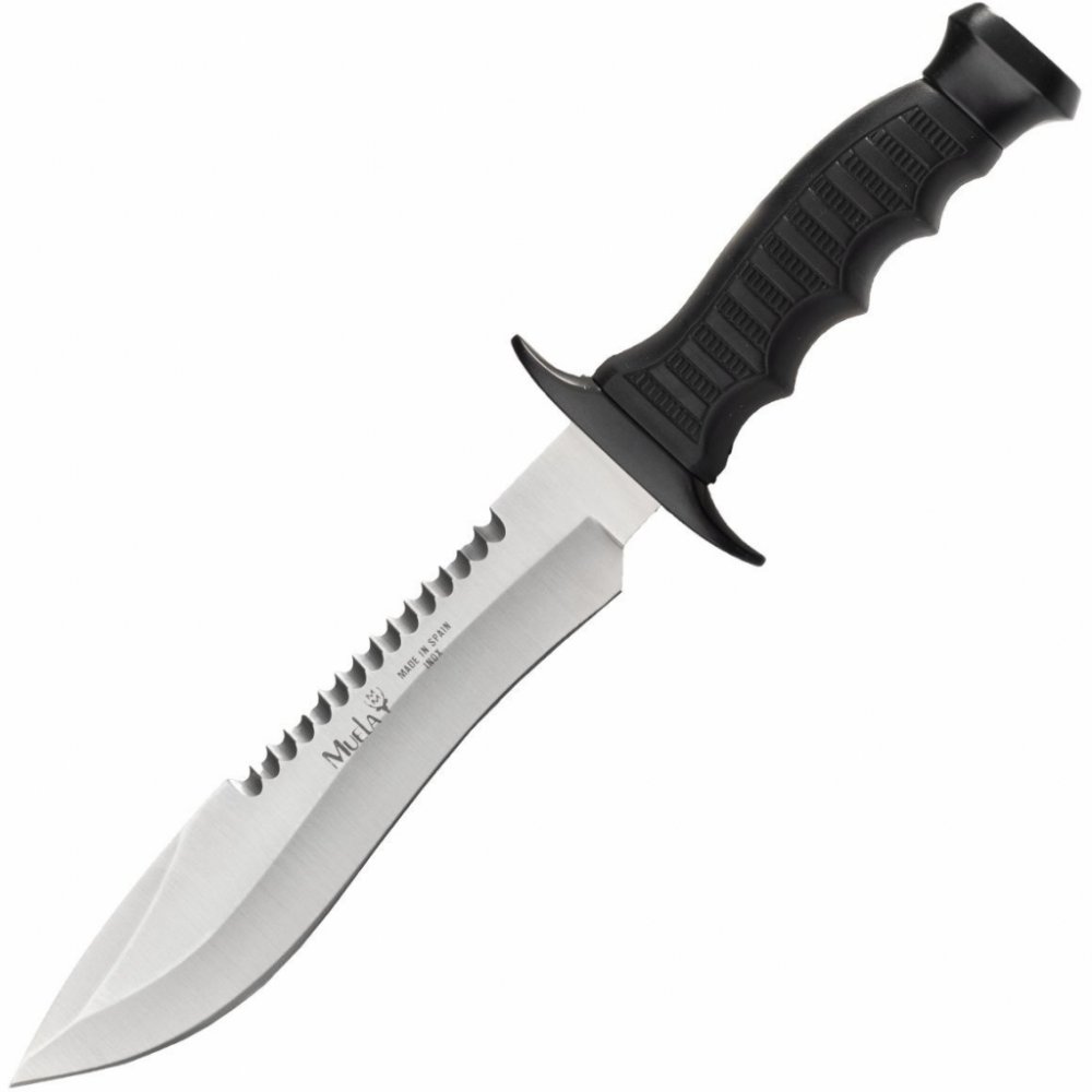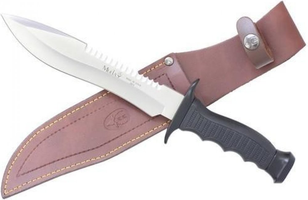cepel - 190 mmstrenka - 125 mmváha - 470 gkožené pouzdroZa téměř 60 let existence se stala Muela jedním z předních evropských výrobců klasických loveckých nožů. Rodinný podnik byl založen v roce 1952 Eladio Muela, dnes ho společně řídí všech jeho 5 dětí. Od začátků v prvních malé dílny se Muela změnila v high-tech výrobce s roční produkcí zhruba 350.000 nožů. Ale i přes moderní počítačem řízenou výrobu, ruční práce je stále jednou z hlavních priorit na dnešních Muela nožích. Zejména komplexní zpracování rohu, jedne ze specialit Muely nemůže být provedeno automaticky. Vyžaduje dlouhodobé zkušenosti expertů, kteří připravují a montují rukojeti ručně. Společnost také klade velký důraz na použití vysoce-kvalitních domácích a exotických dřev na rukojeti. Všechny jednotlivé operace výrobního procesu jsou prováděny v mateřské továrně, včetně výroby kožených pouzder. Pokud není uvedeno jinak, nože Muela mají satin finish upravenou čepel, vyrobenou z Spanish MOVA, molybden vanadové oceli s tvrdostí 57 až 61 HRC Rockwell. Pokud není uvedeno jinak, jsou všechny Muela pevné nože dodávány s koženou pochvou.