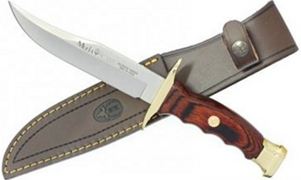 Praktický lovecký a outdoorový nůž Muela BW-14 s pevnou čepelí z molybden-vanadové oceli tvaru Bowie. Má oboustrannou mosaznou záštitu na ochranu ruky. Rukojeť je z odolného a tvrdého dřeva Pakka mosaznou patkou. Dodává se s koženým pouzdrem.