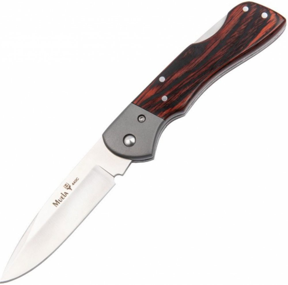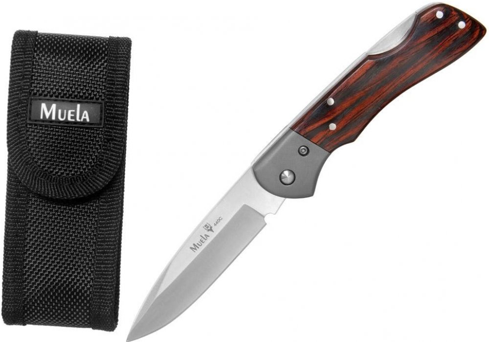Zavírací nůž Muela BX8GR, dřevěné střenky, hřbetní pojistka, šedé ocelové kování, nylonové pouzdro.