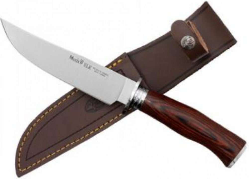 Nože Muela jsou produkcí španělské firmy, která vyrábí cenově přijatelné a kvalitní lovecké nože, zavírací nože, luxusní nože a mnohé další. Při výrobě čepelí společnost Muela používají různé druhy oceli např. 12C27 Sandvik, 14C28N, molybden-vanadová ocel MOVA 60 s tvrdostí 57-61 HRC, ocel Inox 1-42 s tvrdostí 54-58HRC a čepele s označením 440 jsou vyrobeny z oceli Mova-60E. Damaškové nože Muela jsou výsledkem kombinace dvou ocelí a to RWL34 a MPC27, které mají tvrdost 57-62 HRC. Rukojeti nožů Muela zdobí kvalitní materiály mezi které patří paroh a různé druhy dřeva: olivové, Africa Blackwood, Kingwood, COCOBOLO, Amazonas Rosewood a ořechové dřevo. Outdoorový nůž vhodný do přírody, či kempování. Univerzální čepel a pohodlná rukojeť z něj dělá ideálního společníka. Čepel je z kvalitní nerezové oceli. Záštita, kování a patka rukojeti jsou kovové ve stříbrné barvě vyleštěno do zrcadlového lesku. Rukojeť je vyrobena z odolného a tvrdého dřeva Pakka. Dodává se s hnědým koženým pouzdrem.