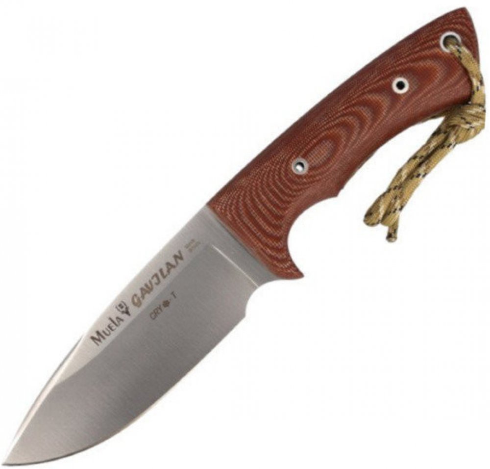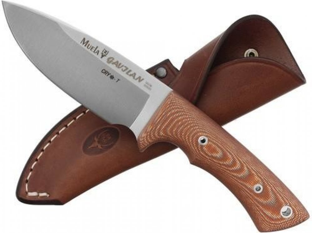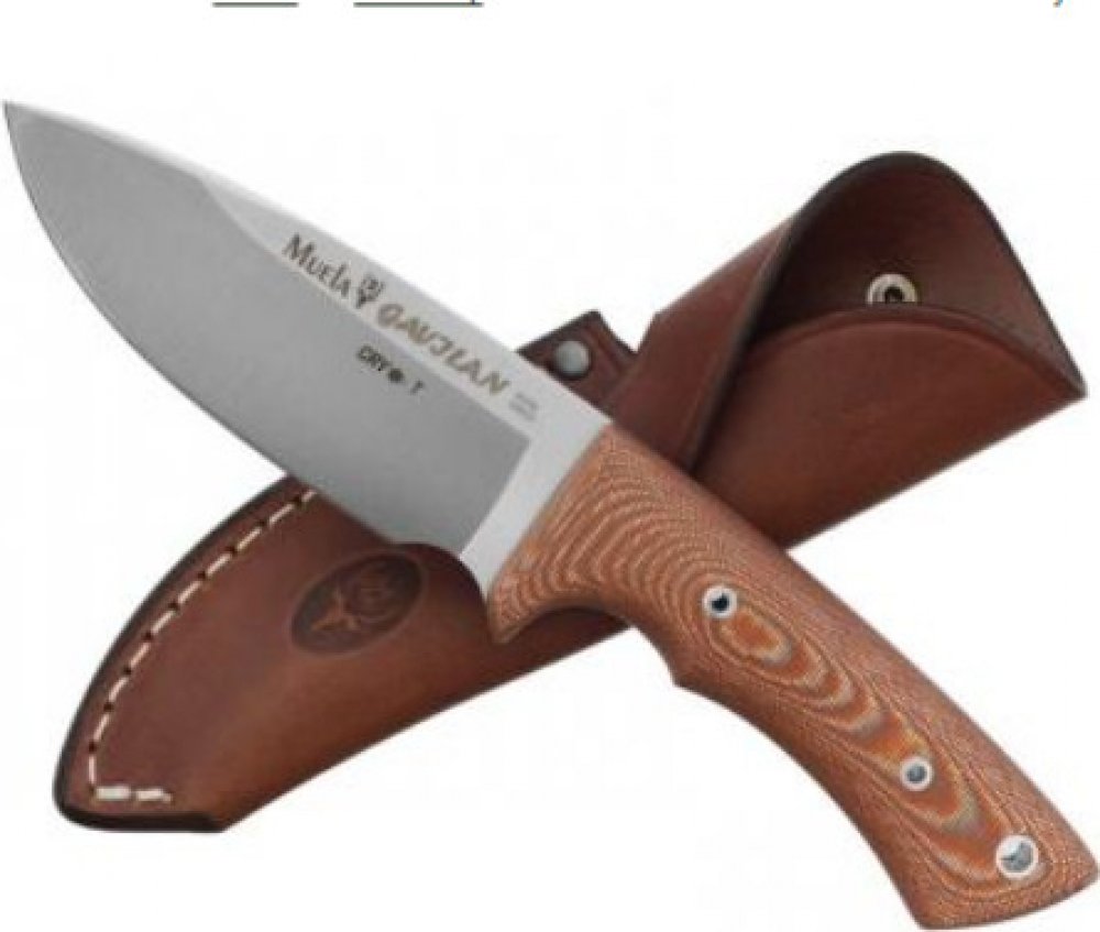 Masivní nůž elegantního designu od španělské firmy Muela, vhodný pro lov a pobyt v přírodě. Nůž je vyroben z jednoho kusu molybden-vanadové nerezové oceli X50CrMoV15, která prošla kryogenní úpravou Cryo-T. Díky tomu je nůž velice odolný a houževnatý, čili se na něj můžete spolehnout také v náročných podmínkách. Rukojeť z hnědé mikarty, otvor s dutým nýtem pro provlečení závěsné šňůry. Nůž je dodáv...