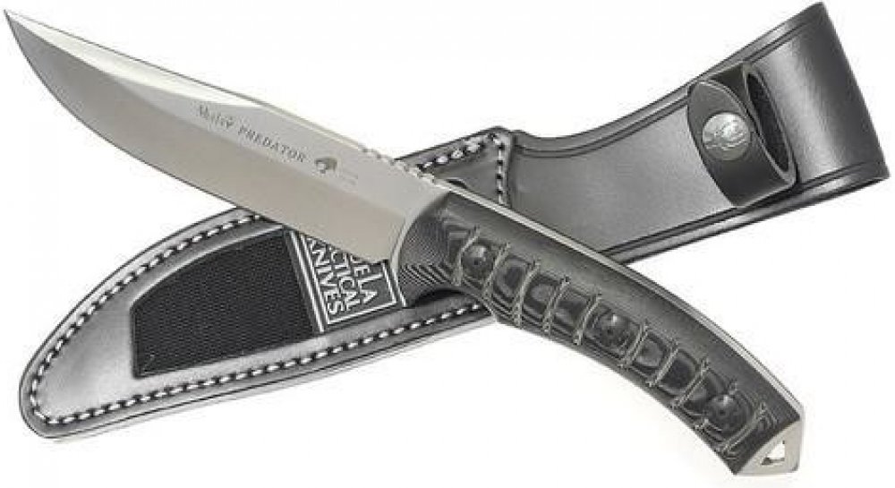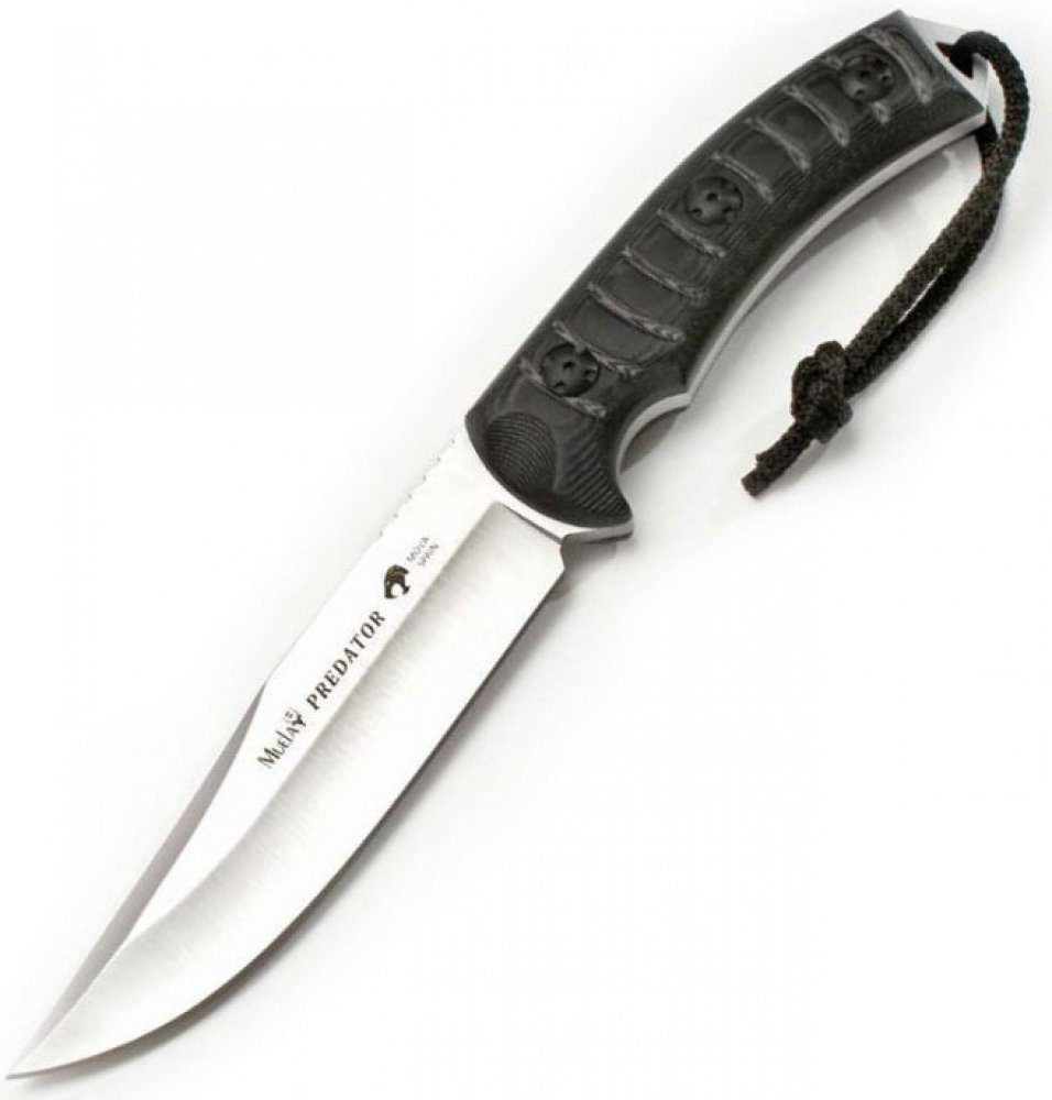 Větší ze dvou nabízených velikostí nožů modelové řady Predator od španělské firmy Muela. Je to univerzální, velmi robustní a odolný nůž, který zvládne i náročné práce a to díky tzv. full tang konstrukci, což znamená, že je vyroben z jednoho kusu oceli. V tomto případě se jedná o molybden vanadiovou ocel o tvrdosti 57 - 61 HRC. Střenky jsou vyrobeny z mikarty, anatomicky tvarované a zdrsněné vroubkováním. Začátek hřbetní části čepele je též opatřen vroubky, pro úchop s předsazeným palcem. Na konci rukojeti je otvor pro provlečení šňůry a vystupující kovová část tvoří hrot. Nůž je dodáván s pouzdrem v kombinaci kůže a nylonu.