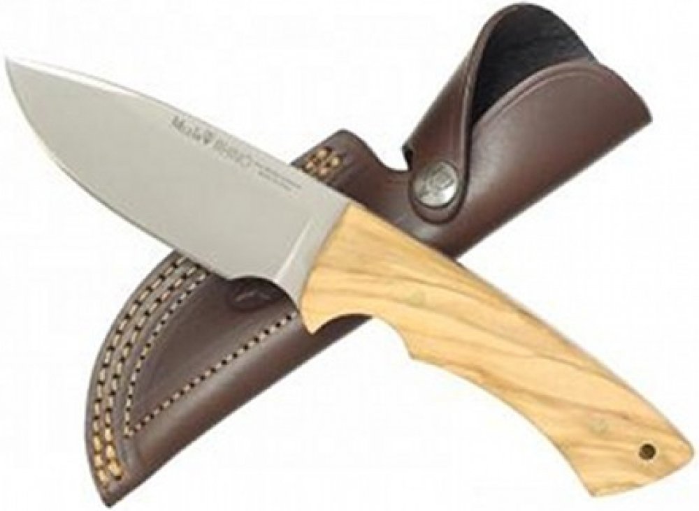 Muela s pevnou čepelí 100 mm 220 mm 210 g molybden-vanadová ocel pro náročnější úkony (≥ 9 cm) do bundy nebo tašky olivové dřevo 1 s hladkým ostřím