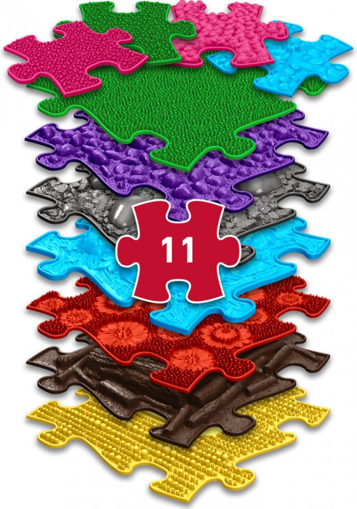 Měkké podlahy slouží k jemnější stimulaci, probuzení a masáži chodidel. Poskytují úlevu unaveným chodidlům a aktivují nepoužívané svaly. Tvrdé povrchy pomáhají k zahřátí nohou, zintenzivní pocity z chůze po podlahách, posilují svaly a zpevňují ochablé kotníky. Pro zpevnění středu těla, pro lepší rovnováhu a celkovou stabilitu je vhodná 3D podlaha Klády. Celkově jde tedy o vyváženou kombinaci dílů, která splní Vaše očekávání.