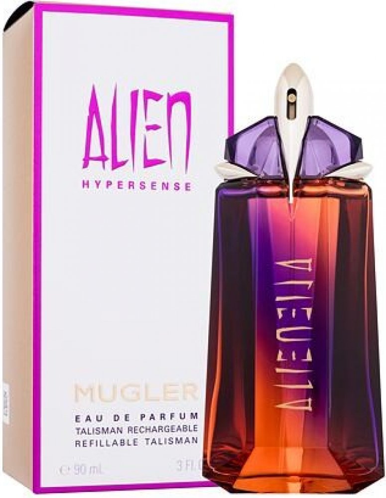 Jde si pro tebe. Instinktivní. Nekompromisní. Hypnotická a občas nebezpečná. Proměňuje se uvnitř i navenek jediným stříknutím její vůně, jejích pět smyslů je zesílených. Zrak, sluch, chuť, hmat, vůně... Vše cítí hyperbolicky, propojená se svou nejautentičtější, nejpůvodnější duší. V tom je její síla, její potěšení, její odvážné nefiltrované já. Múza Mugler Alien, která je stále vnitřně laskavá, vám nabízí sílu přístupu k celému spektru vaší smyslnosti. Zvláštní a úžasná, přichází si pro vás, uchvátí vás, přetransformuje vás, pozve vás, abyste prožili své nadsmysly s novou vůní. Smyslové přetížení vrstvící smyslové střípky šťavnaté ovocnosti, dřevitosti a květinovosti, parfémovaná voda Alien Hypersense posiluje původní vůni Alien s podpisem slunečního jasmínu sambac v překypující zjevení. Hypermoderní, hyperženská, tak divoce květinová, Alien Hypersense vyjadřuje sílu múzy Alien v její nejinspirativnější podobě. Květinová kvintesence zachycená v technicolorovém flakonu s talismanem. Vyjádřeno dosud nejpodivnějším, nejchladnějším vyobrazením vůně Mugler. Za hranicemi parfému: výzva k vnímání neobyčejného. K uvolnění vašeho vnitřního Aliena.