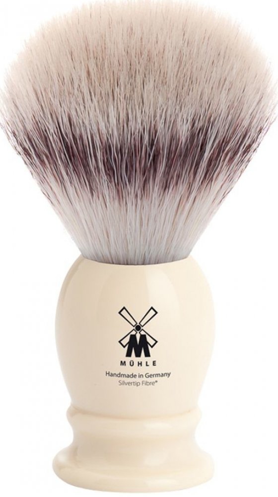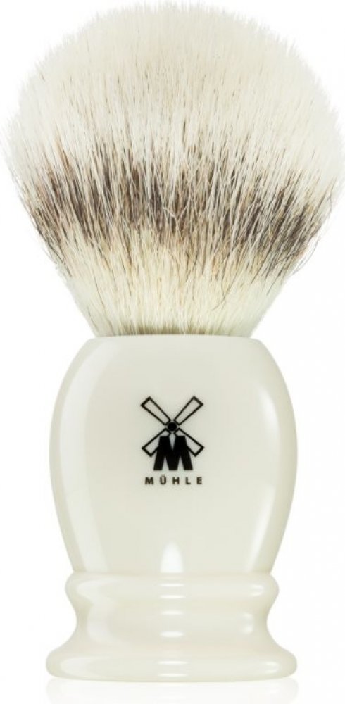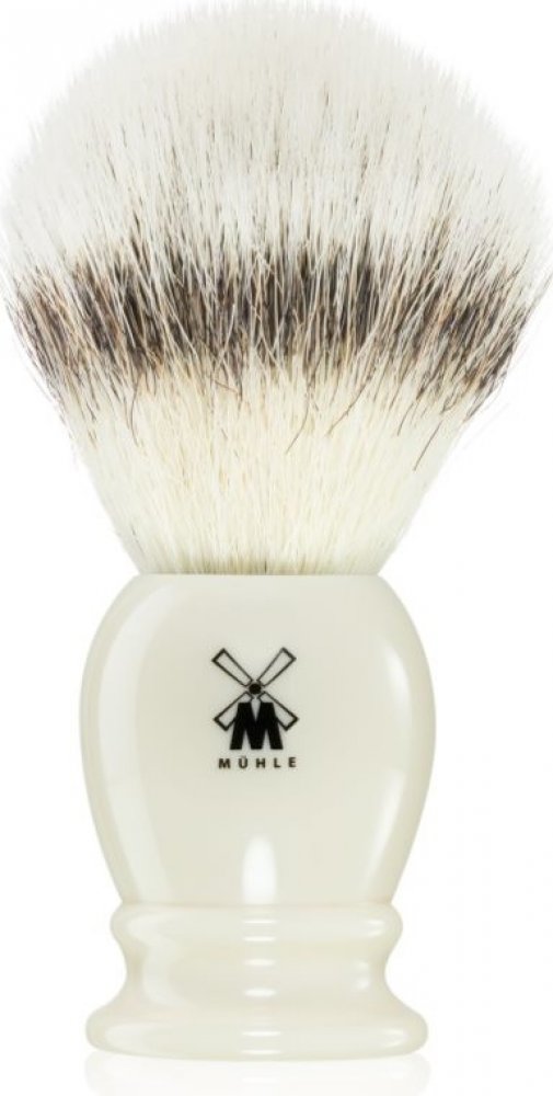 Štětka na holení Mühle z nejkvalitnějších a tím pádem nejjemnějších jezevčích štětin kvality silvertip. Nejkvalitnější proto, že jich na sobě jezevec má jenom málo, jen na několika místech, z jednoho jezevce se jich tak vyrobí pouhé dva kusy. Průměr štětky je M, takže ani obří královská, ani malá cestovní, něco mezi. Rukojeť je pak ze syntetické pryskyřice, několikrát přeleštěné, v černé barvě. Tvar je klasický, jak se ostatně na řadu s názvem Classic sluší a patří.