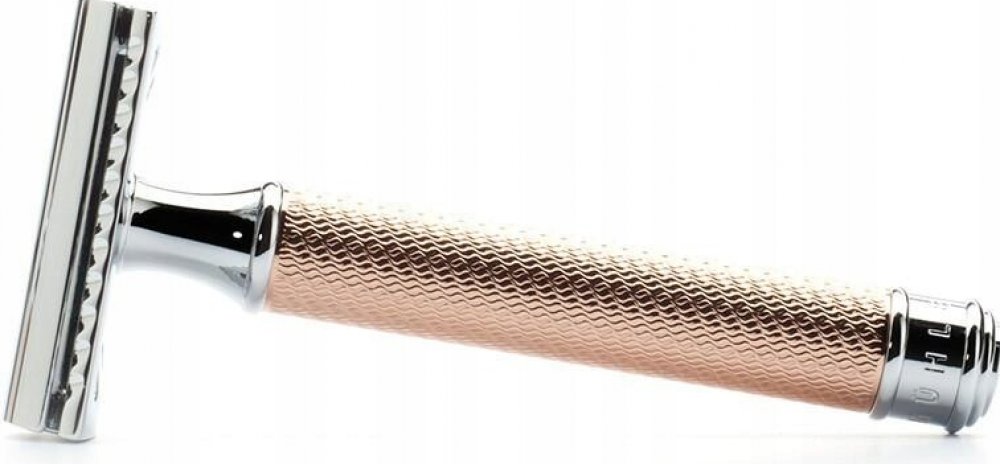 Přesná ergonomie a krásný design. Strojek je celokovový a pochromovaný, v provedení Rosegold. Povrch je odolný proti korozi. Rukojeť je velmi jemně zdobená.