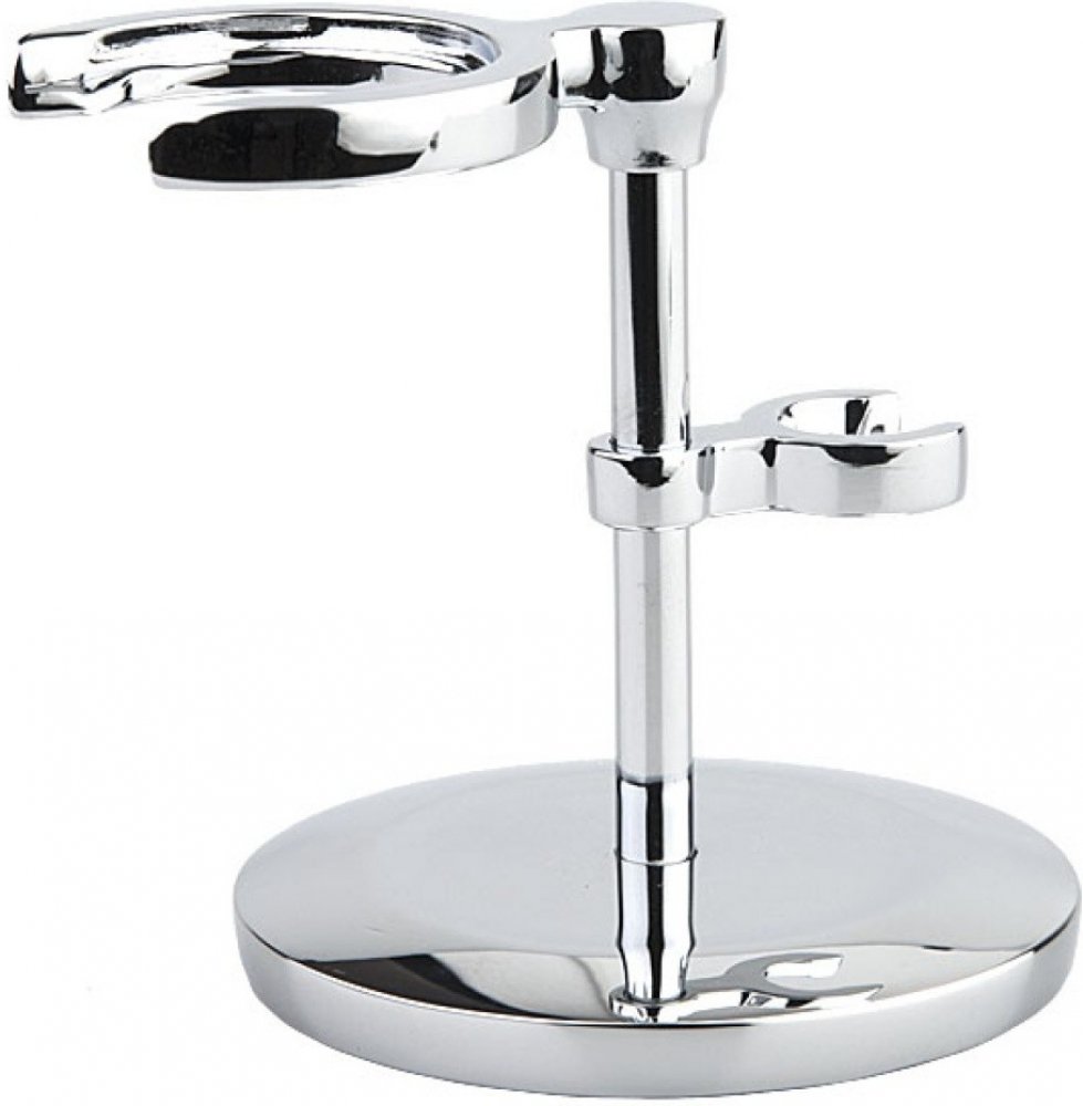 Mít vše po ruce může být občas nesmírně užitečné. Tento stojánek na holicí štětku a strojek spojuje moderní design a kvalitní materiály, jako je chromovaná mosaz, která zajišťuje luxusní vzhled a trvanlivost. Díky hmotnosti 195 g je tento stojánek stabilní a bezpečně uchová vaše strojky Mühle typu R41, R89, R101, R102, R103, R106, R107 a R108, takže budete mít vše připravené na perfektní holení.Výška 75 mm.Vhodný pro štětky o maximálním průměru uzlu 25 mm.Průměr otvoru na strojek 12 mm.Vyrobeno v Německu.