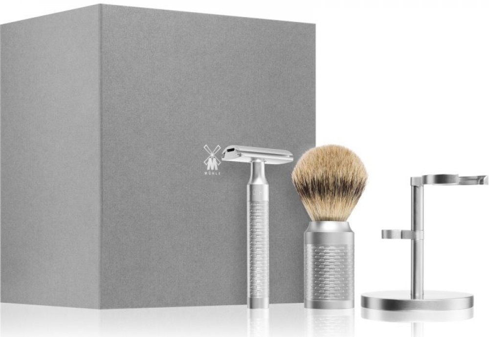 Mühle ROCCA Shaving Set, 3 ks, Sady na holení pro muže, Klasické holení se těší stále větší oblibě. Pokud i vy chcete mít ve své rutině prvky klasického holení, produkt Mühle ROCCA Shaving Set je ideálním přírůstkem do vaší kosmetické výbavy. Usnadní vám průběh holení a pomůže dosáhnout výsledku jako z profesionálního barbershopu. Sada obsahuje: stojan pro holicí sestavu 1 ks štětka na holení z je...