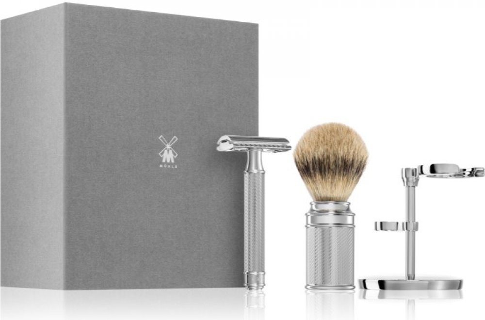 Mühle TRADITIONAL Set Chrome, 1 ks, Sady na holení pro muže, Udělejte radost kosmetickým setem Mühle TRADITIONAL Set Chrome. Díky němu se rutina holení a následná péče stane pro každého moderního muže příjemným zážitkem. Sada obsahuje: Mühle TRADITIONAL R89 tradiční holicí strojek 1 ks Mühle TRADITIONAL Silvertip Badger štětka na holení z jezevčí srsti 1 ks stojánek 1 ks Vlastnosti: pro dokonale h...