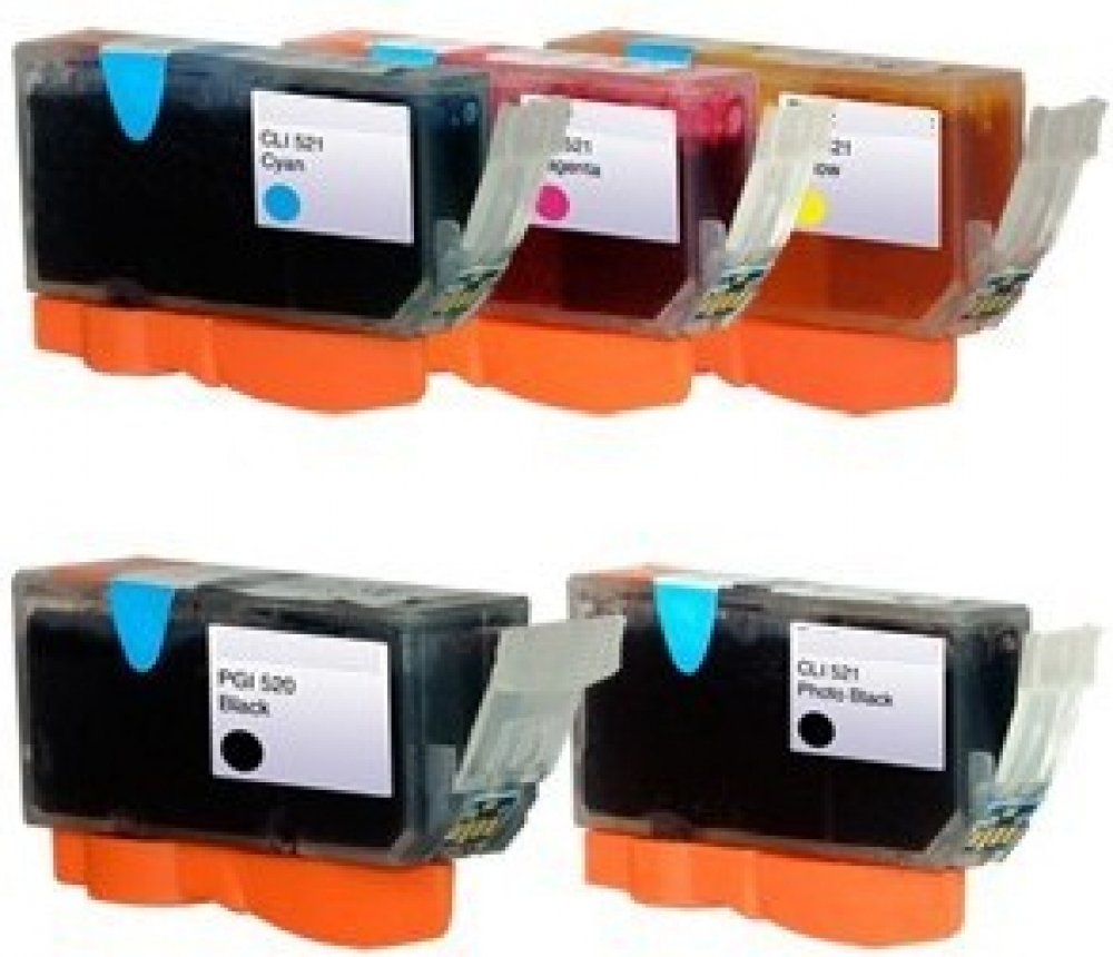 Sada 5ks alternativní inkoustových náplní nahrazující Canon PGI-520Bk, CLI-521Bk, CLI-521C, CLI-521M, CLI-521Y určená pro tiskárny Canon IP 3600 / IP 3680 / IP 4600 / IP 4700 / MP 540 / MP 620 / MP 640 / MP 980 / MP 990 / MX 860 / MX 876, ....