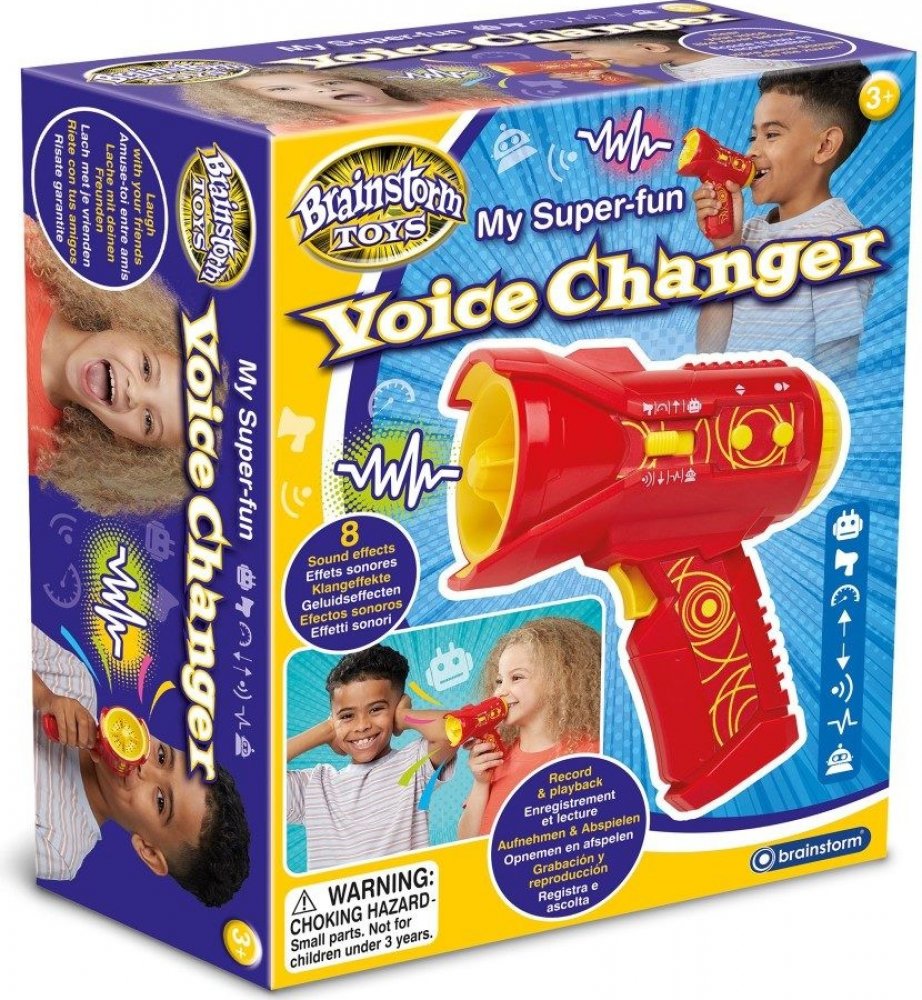 Voice changer neboli měnič hlasu je zábavná hračka, se kterou si užijete mnoho legrace. Nechte svůj hlas znít velmi divně s tímto mega-zábavným měničem hlasu. Osm různých zvuků včetně ozvěny, pomalého, nízkého, vysokého, pískavého a dvou robotů. S funkcí nahrávání a přehrávání. Užijte si veselou zábavu se svými přáteli!