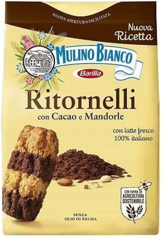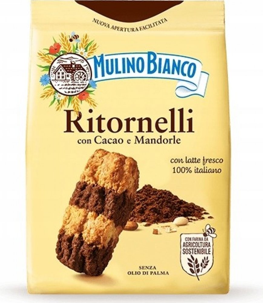Delikatesa mandlí kombinovaná s křupavým sucharovým zrnkem a intenzivní chutí kakaa dává život jedinečné vůni a chuti Ritornelli. Dvě příchutě, dvě barvy pro vytvoření vaší nejšťastnější snídaně.