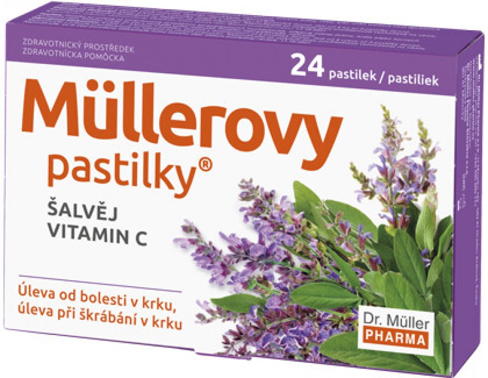 Müllerovy pastilky® se šalvějí a dalšími bylinnými extrakty as vitamínem C.