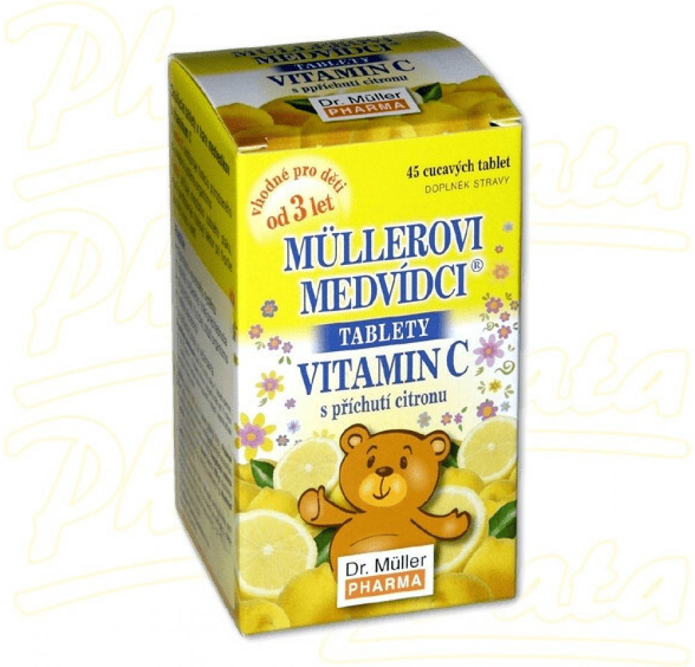 Dr. Müller Pharma 45 tbl tablety imunita unisex Dr. Müller pro všechny perorální od 3 let Citrón Česká republika vitamín C imunita a obecné zdraví 15–45 200.0 mg Kdykoliv 1–3× za den Mimo dosah dětí