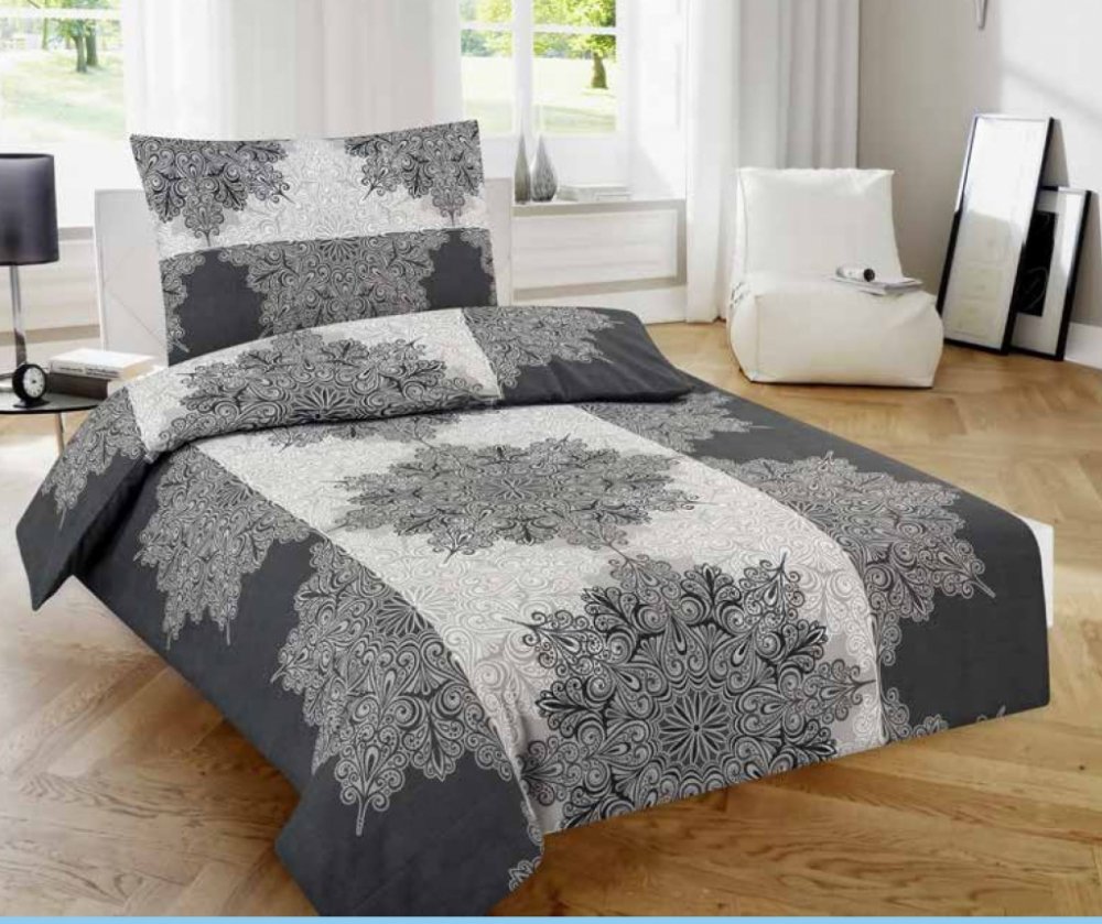 Kvalitní povlečení ze 100% bavlny. Rozměry 140x200 cm přikrývka + 70x90 cm povlak na polštář. Nádech orientu krásných velkých mandal v odstínech šedé jistě oživí každou moderní ložnici. Bavlněné povlečení Mandala je jasnou volbou pro milovníky východní kultury a také harmonie a rovnováhy, "mandala" v překladu znamená "kruh".