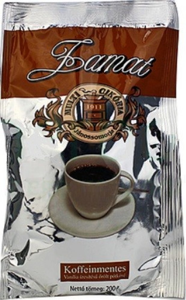Kávovina s vanilkovou příchutí - náhrada kávy bez kofeinu, kterou tvoří směs z pražené čekanky, žita a ječmene.