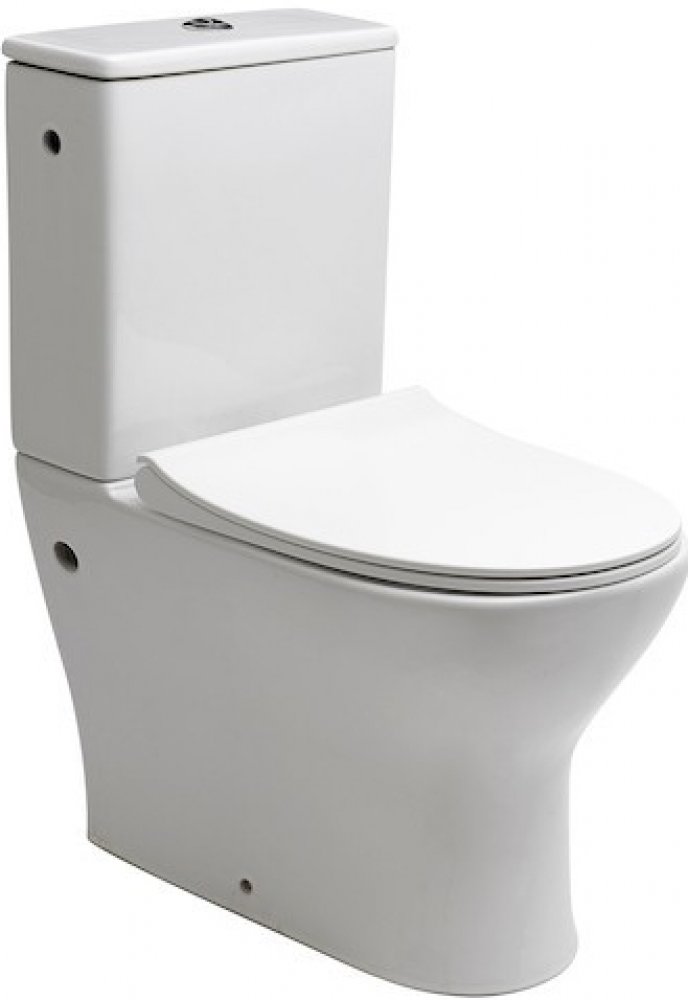 Novinka. Elegantní WC kombi rimless (bez oplachového okruhu) s univerzálním odpadem a bočním napouštěním - dá se použít jako zadní, spodní či šikmý kombík. Spodní část je celokapotovaná, tzn. že je odpad zakryt až ke zdi. Součástí WC je nádržka včetně armatury a sedátko se softclose zavíráním ve slim verzi. Sadu na uchycení je nutné přiobjnat.