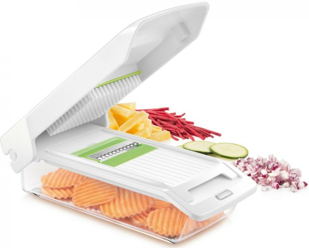 Kráječ/struhadlo HANDY je multifunkční, pohodlně a bezpečně s ním nakrájíte zeleninu a ovoce na stejně velké kostičky či hranolky.