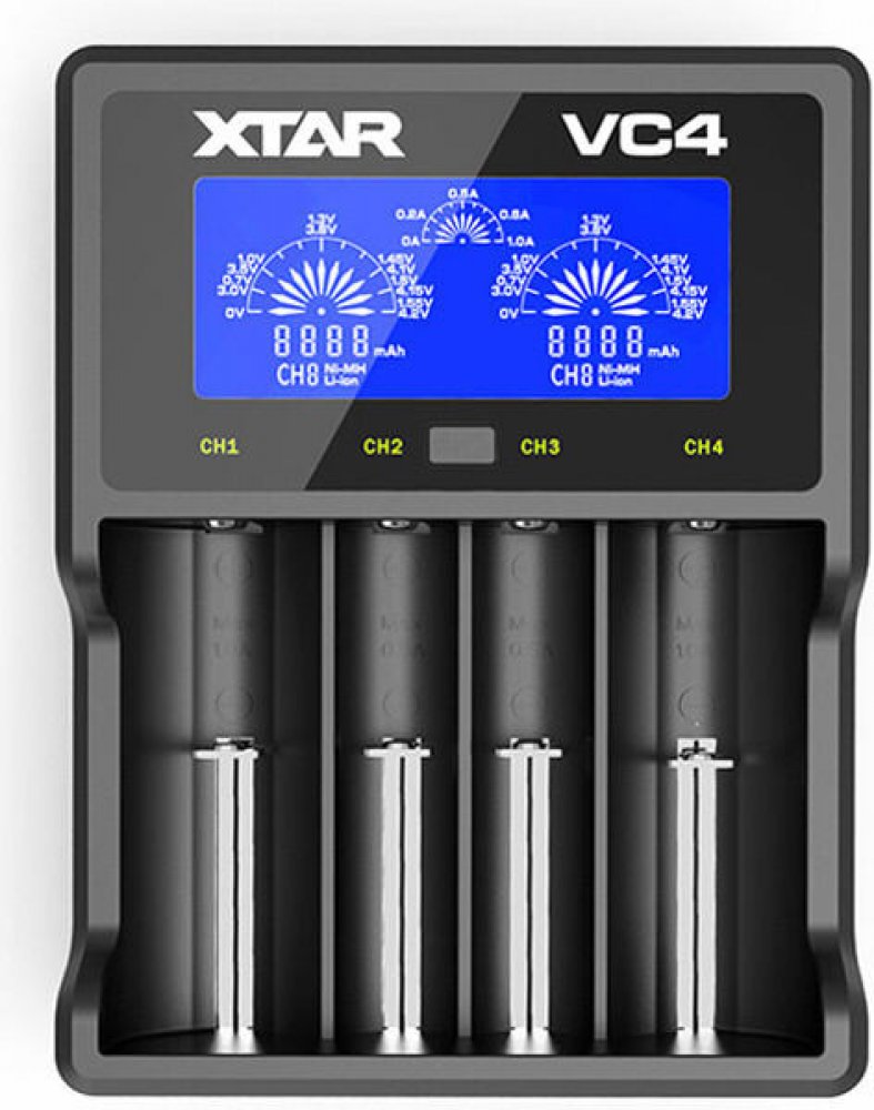 XTAR VC4 je kvalitní multifunkční nabíječka článků a dalších baterií od výrobce XTAR. Disponuje čtyřmi individuálními nabíjecími sloty. Lze nabíjet až čtyři baterie současně, případně každou baterii samostatně. Nabíječka XTAR VC4 podporuje většinu běžně dostupných článků typu Li-ion, IMR, INR, ICR a Ni-MH, Ni-CD. Ve vrchní části nabíječky se nachází velký a přehledný LCD displej, který zobrazuje všechny potřebné parametry během nabíjení. Na displeji se zobrazuje dobíjecí proud baterií, napětí baterií a kapacita baterií. V případě kompletního dobití článku se tento údaj zobrazí přímo na displeji. Nabíječka VC4 také nabídne funkci zobrazení chybových hlášek, pokud se během používání na displeji zobrazí NULL, jedná se o vadnou baterii, v případě zobrazení ERR je baterie vložena obráceně, nebo došlo k jejímu zkratu. Tato funkce ušetří váš čas během nabíjení. Pod displejem se nachází malé tlačítko, kterým si snadno rozsvítíte a zhasnete displej pro úsporu energie.