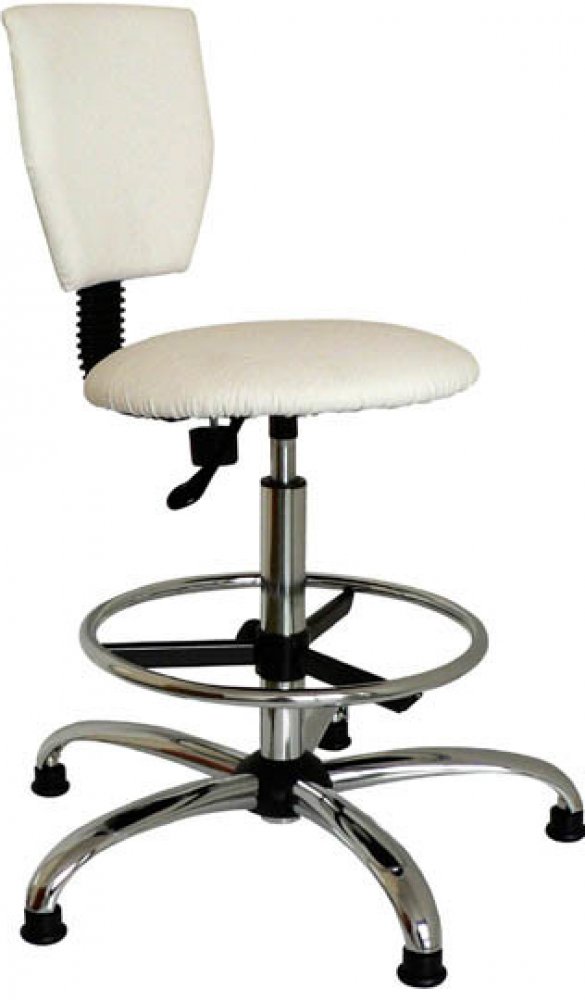 Kancelářská, pracovní otočná židle pro zátěžové a jiné provozy. Židle je vybavena vysokým pístem a nastavitelným kruhem na nohy, takže umožňuje práci u zvýšených pracovních stolů. Židle je čalouněná v potahové látce nebo v kožence, sedák je kruhového tvaru.