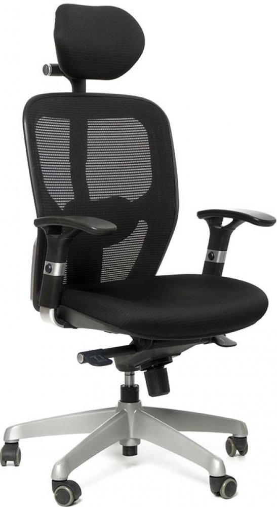 Výškově nastavitelné područky v černo-stříbrném barevném provedení. Podloketníky z měkčeného polyuretanu.