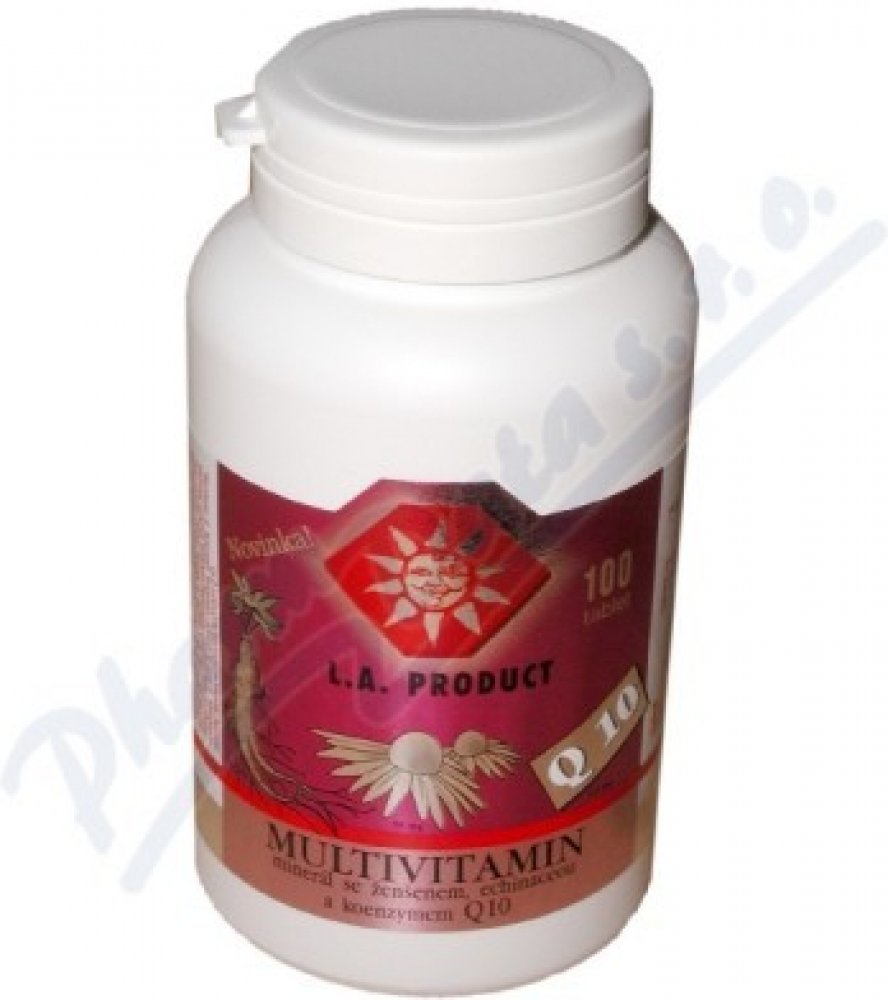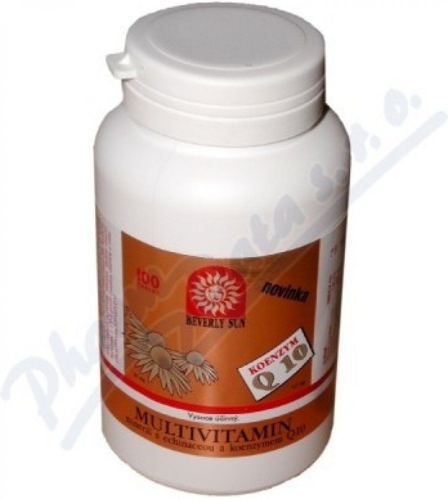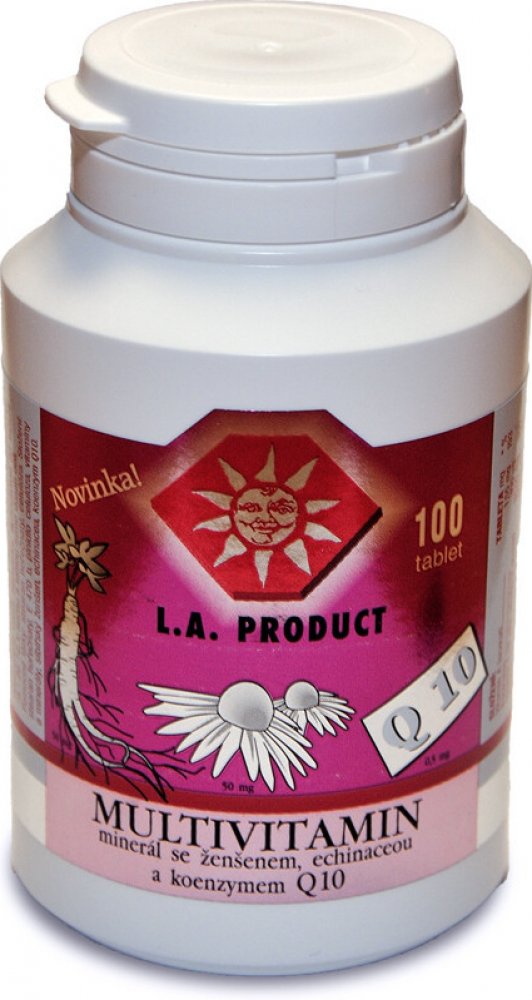 Multivitamin-min.+ženšen+echin.+Q10 tbl.100 Multivitamín s minerálem a se sibiřským ženšenem, echinaceou a koenzymem Q10 obsahuje vitamíny, minerály, stopové prvky, sibiřský ženšen, echinaceu a koenzym Q10. Celkem 29 složek.