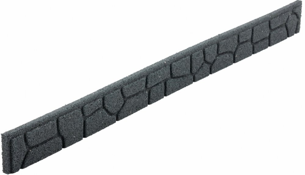 z kategorie zahradní obrubníky. Zahradní obrubník z gumy v imitaci kamenné zídky slouží k ohraničení trávníku od záhonu. Obrubník upevníte do země díky kolíkům s hákem, které jsou součástí balení. Každé balení gumového obrubníku obsahuje 3 upevňovací kolíky a 1 spojovací lištu. Práce s obrubníkem je snadná, protože je pružný, můžete ho ohýbat do požadovaných tvarů. Obrubník je vyroben z recyklovan...