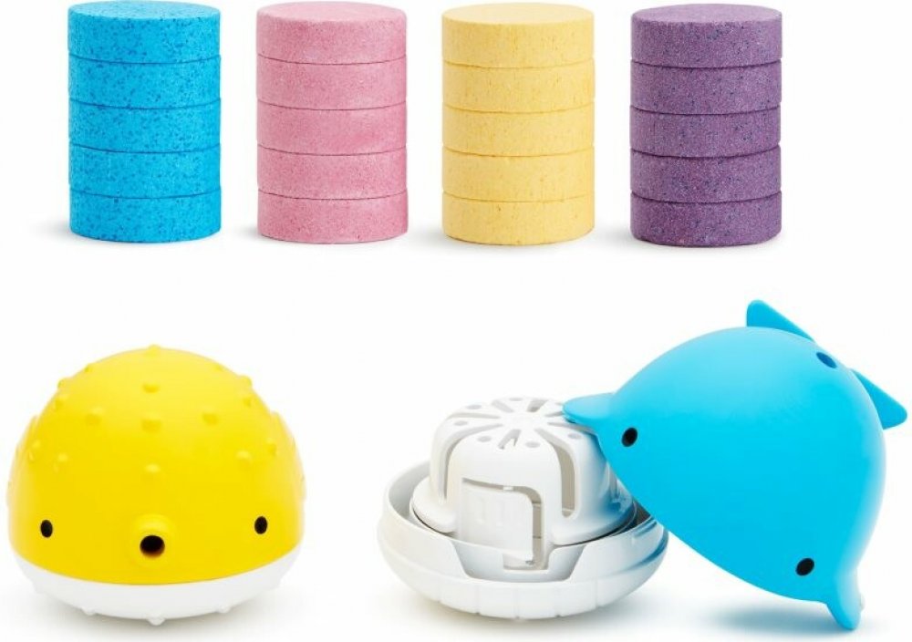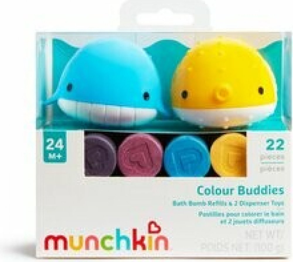 Munchkin Color Buddies, 2 ks, Hračky do vody pro děti, At už chcete udělat z koupání příjemný rituál a dostat tak své ratolesti do vany bez protestů, nebo je zabavit v bazénu či třeba v létě u moře, hračka Munchkin Color Buddies vám s tím pomůže. Zaměstná zvídavé ručičky a zaručeně promění každé cachtání ve vodě na nekonečnou zábavu plnou dětského nadšení. Vašeho potomka navíc nejen zabaví, ale také podpoří dětskou fantazii a pomůže v rozvoji jeho smyslového vnímání a dalších dovedností. Vlastnosti: senzorické barvy stimulují rozvoj smyslů dítěte díky praktickému tvaru lze hračku jednoduše uchopit umožňuje dětem nabírat vodu a užívat s tak spoustu legrace i experimentů zajišťuje dítěti zábavu při koupání Sada obsahuje: Munchkin Color Buddies barevné šumivé tablety do koupele 20 ks