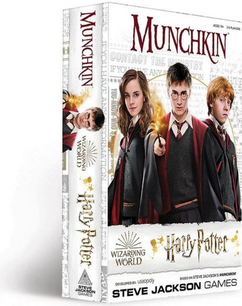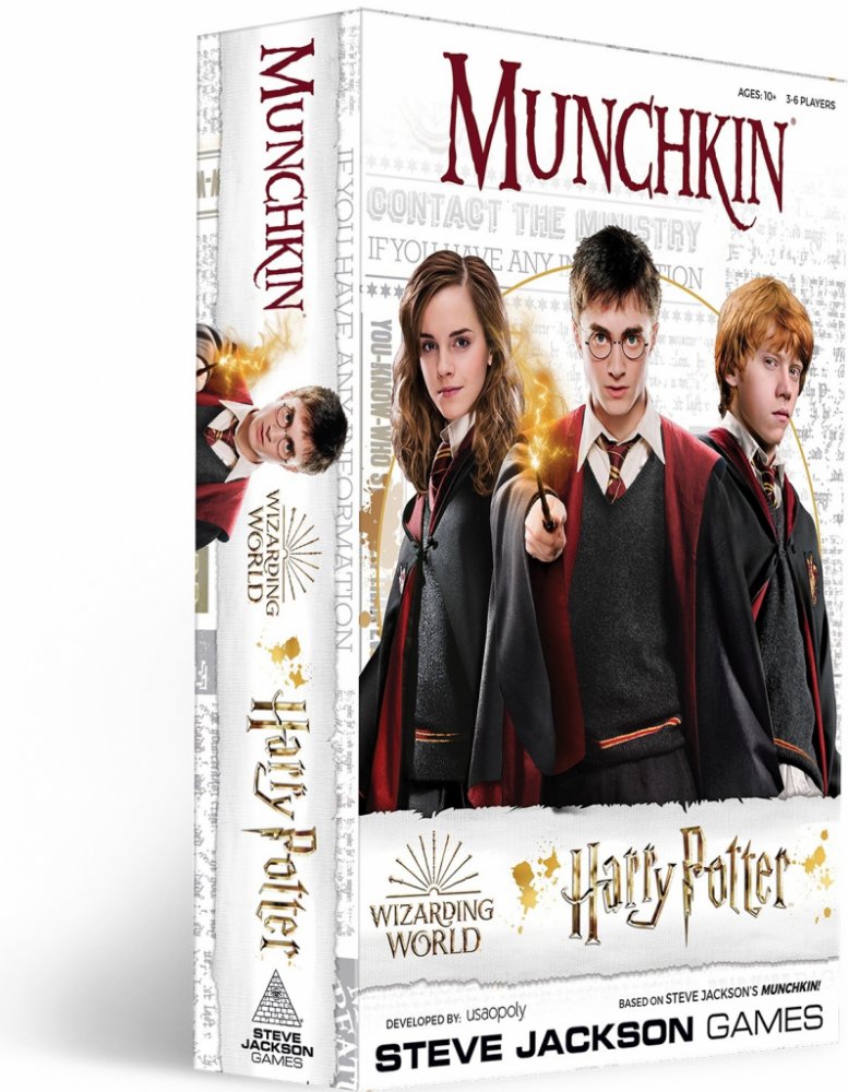 Munchkin: Harry Potter přivádí čarodějky a čaroděje z Bradavic do světa Munchkin, kde hráči musí jako obvykle vykopávat dveře, brát poklady a zvyšovat úroveň.