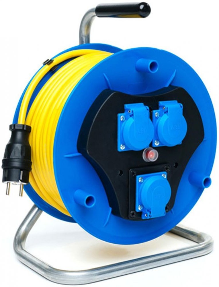 Naviják prodlužovacího přívodu s vestavnou zásuvkou 3 x 2P+PE a 25m kabelem AT-N07V3V3-F3G1,5 (K35)jmen. napětí: 230V~, krytí: IP44, průměr cívky:275 mmmax. zatížení: navinutý 1000W/230V~ / rozvinutý 3000W/230V~hmotnost 4,95 kgrozměry 290 x 200 x 360 mmCertifikováno dle ČSN EN 61242cívka z odolného plastu - pro pohodlné navinutí celé délky kabelustabilní stojánek z ocelové pozinkované trubky s izolovanou rukojetí - pro snadnou manipulacivestavná 3zásuvka se samozavíracím ochranným víčkem - pro připojení více spotřebičůkrytí IP44 - pro ochranu proti stříkající voděbrzda cívky - proti nechtěnému rozmotání kabelutepelná pojistka - pro ochranu proti přetíženímrazuvzdorný kabel s plastovou izolací - pro střední a velká mechanická namáhání ve stavebnictví, průmyslu a zemědělství, v prostředí obyčejném, studeném i vlhkém (odolný proti ztíženým klimatickým podmínkám a teplotám až do -35°C)určeno pro venkovní použití