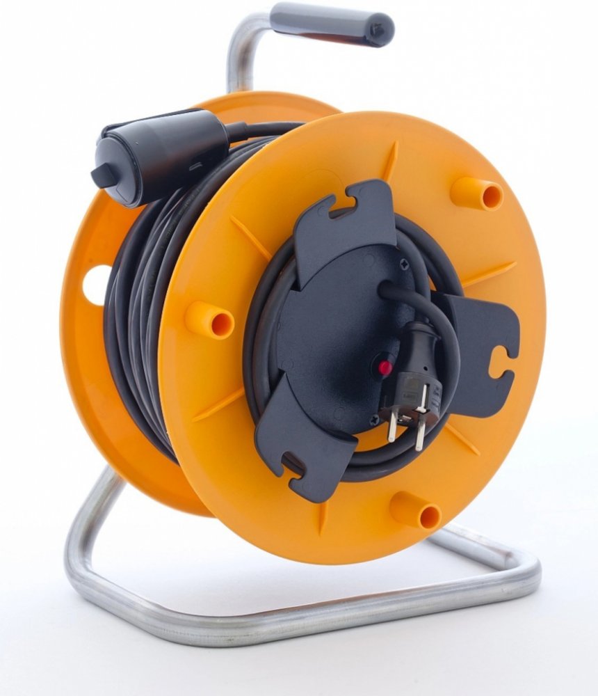 Naviják prodlužovacího přívodu Munos řady HOBBY pro běžné nároky na použití ve vnitřním nebo suchém prostředí. Tento naviják má cívku o průměru 275 mm vyrobenou z odolného plastu, stabilní stojánek z ocelové pozinkované trubky, izolovanou rukojeť, pohyblivou zásuvku 230 V s ochranným víčkem, brzdu cívky, tepelnou pojistku a kvalitní kabel s pryžovou izolací. Ten je vhodný pro střední mechanická na...
