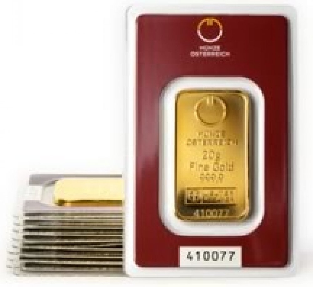 Münze Österreich, 20 gram, Rakousko, investiční zlatý slitek, SET 10 KS - Investiční zlato. Investiční zlatý slitek 20 gramů - Münze Österreich. Ryzí zlato. 24 karátů. Slitek je dodáván v bezpečnostním obalu. země původu: Rakousko rafinér: Argor Heraeus SA obsah drahých kovů: 999,9/1000 Au rozměr: 23,25 x 40,35 x 1,2 mm váha: 20 gramů číslovaný s certifikátem set 10 ks