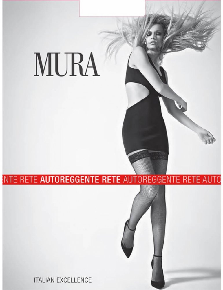 Mura dámské síťované samodržící punčochy s krajkou NERO