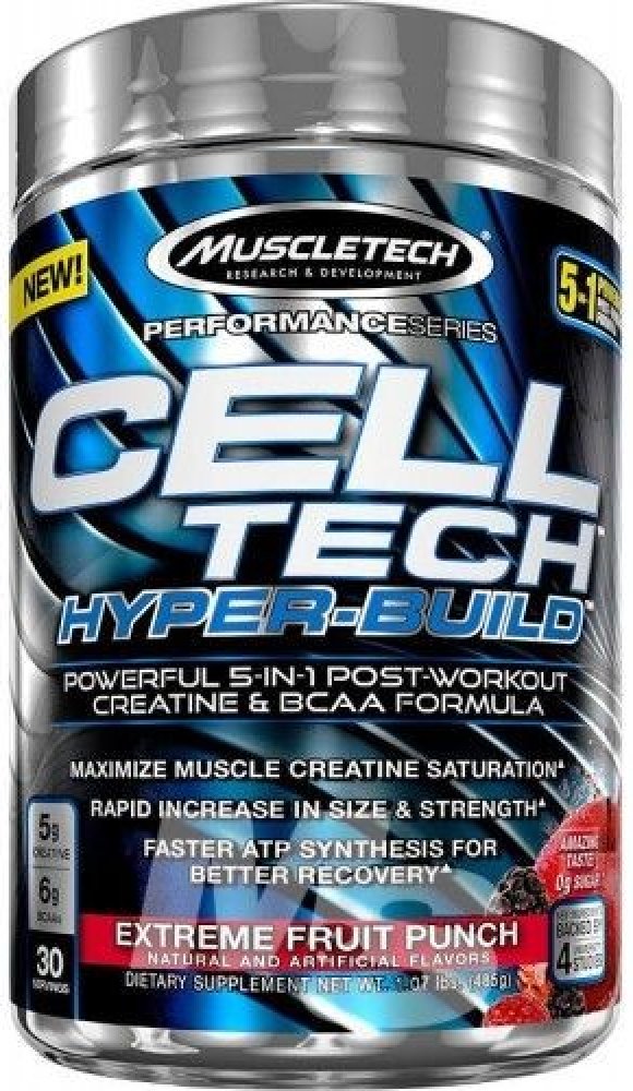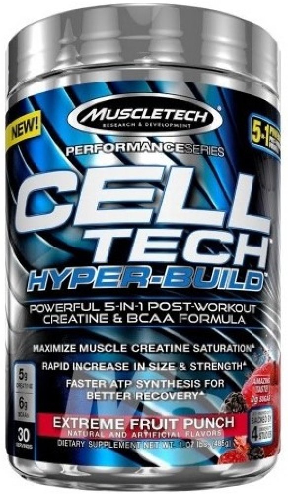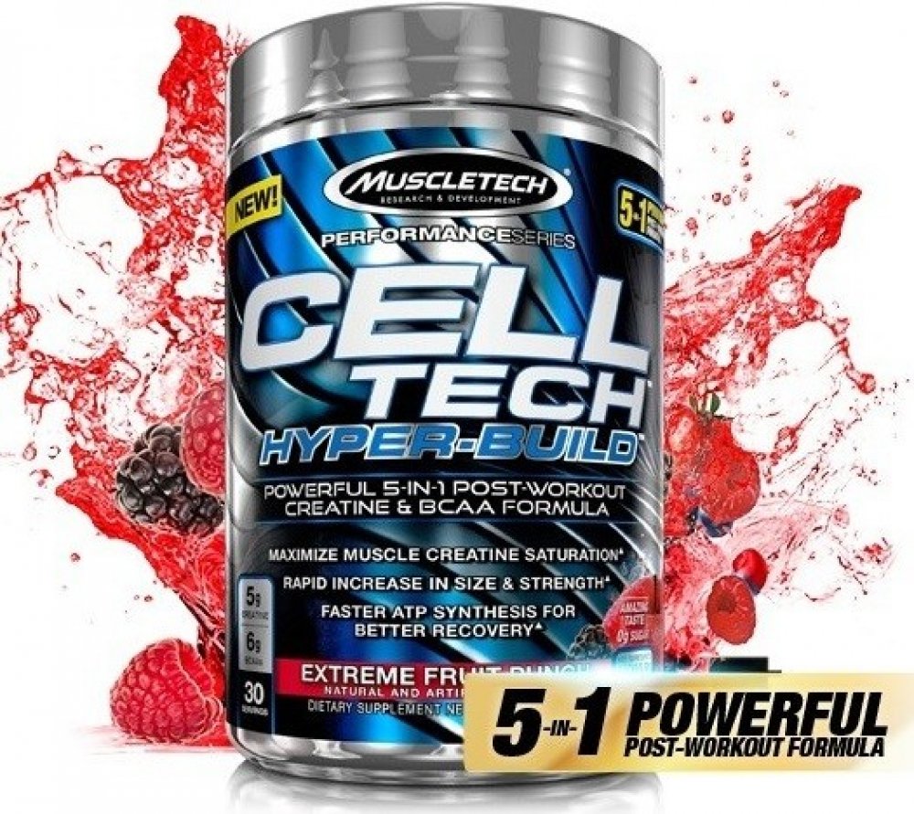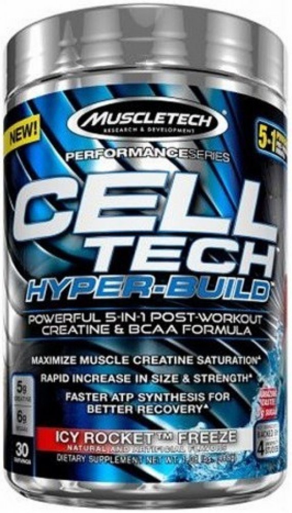 Cell-Tech Hyper-Build zlepšuje schopnost těla regenerovat ATP, přičemž nasytí svaly kreatinem pro jejich růst a zvýšení síly. Do Hyper-build byly přidány 4 g esenciální aminokyseliny L-leucin, která nastartuje proteinovou syntézu a udržuje tělo v anabolickém stavu. Elektrolyty v Hyper-build zase podpoří hydrataci a doplnění minerálů, které jsou vylučovány při intenzivní svalové námaze při sportovním výkonu. Cell-Tech Hyper-Build urychlí potréninkovou regeneraci, zmírňuje bolest, křeče a únavu svalů.