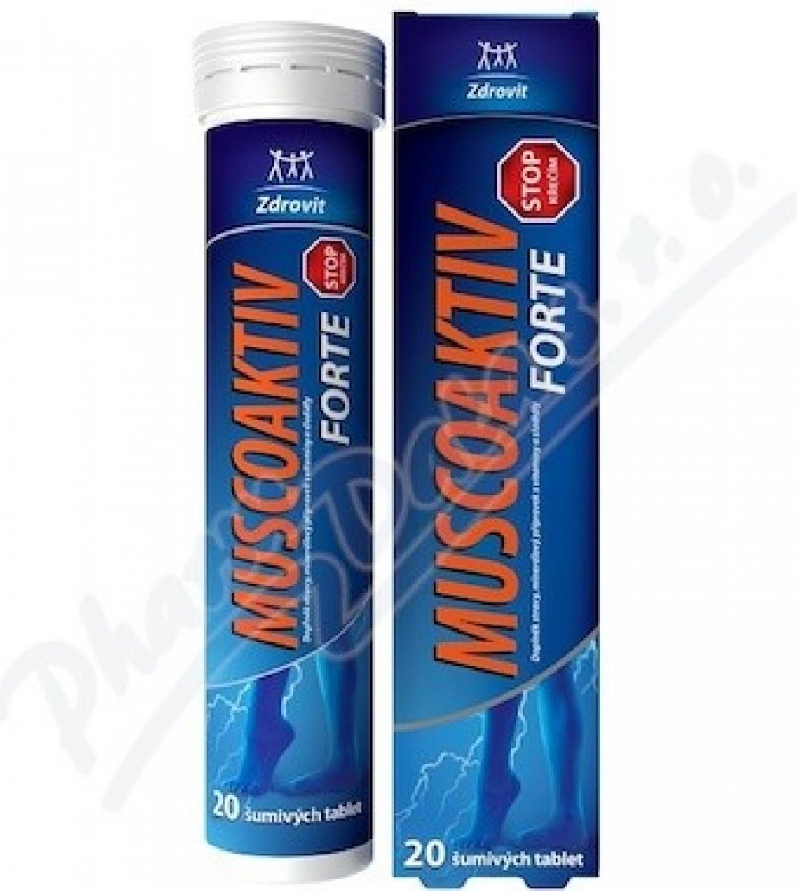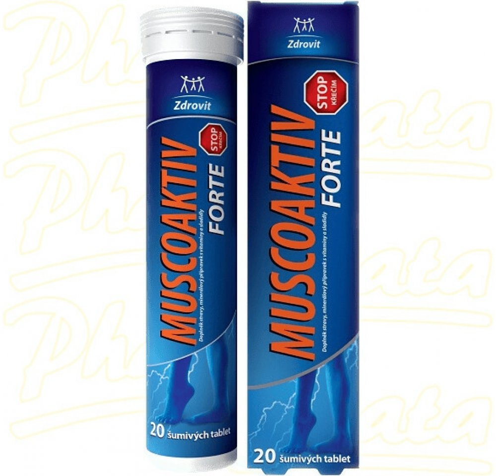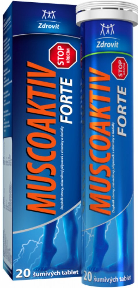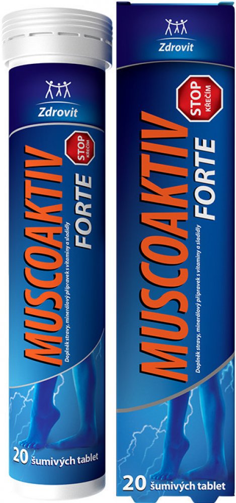 Doplněk stravy Zdrovit Muscoaktiv je minerální přípravek s obsahem hořčíku, draslíku, vitamínu D a vitamínu B6. Jedná se komfortní formu ve vodě rozpustných tablet.