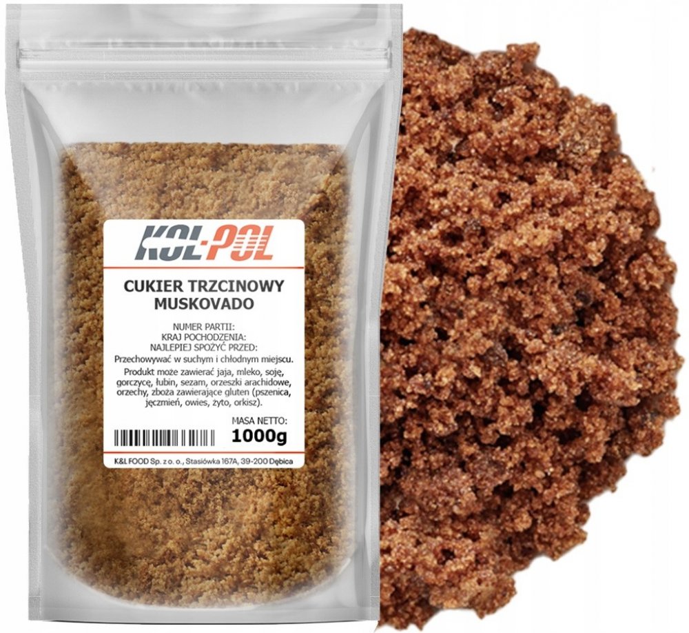 Cukr Třtinový Muscovado 1kg Nerafinovaný tmavý přírodní dark Kol-Pol⭐⭐⭐⭐⭐Cukr třtinový Muscovado 1 kg