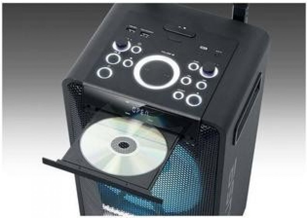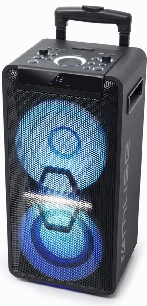 Party reproduktor, výkon 300 W, hudba přes Bluetooth, NFC pro rychlé připojení, CD-R/RW a MP3 přehrávač, světelné efekty, handsfree, vstup AUX, USB