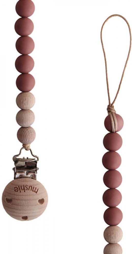 Klipy na dudlíky od značky Mushie, to je láska na první pohled. Důvodem je citlivě zkombinovaný efekt dřeva na silikonových korálkách s jemnými elegantními vintage barvami. Ty jsou vybírány velmi pečlivě a celý design se podřizuje heslu „jednoduchost”.