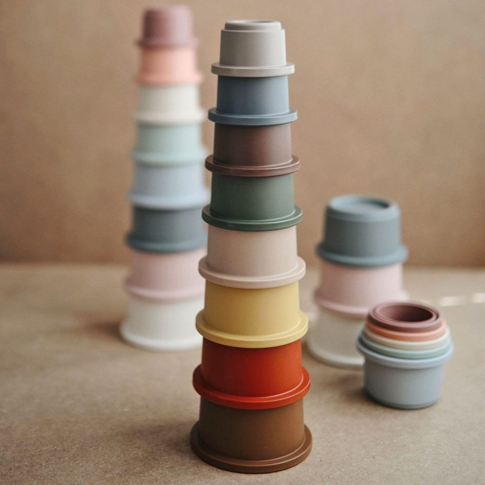 Mushie skládací stohovací věž je zábavnou a rozvojovou hračkou pro vaše děťátko, která upoutá je...