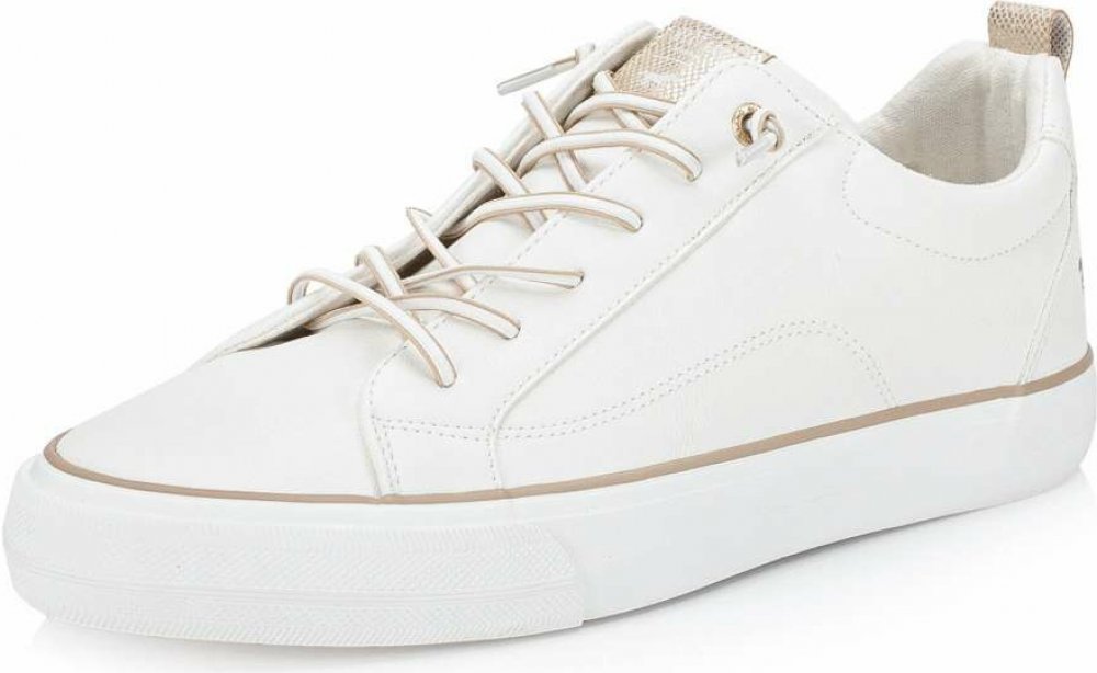 Světlé dámské tenisky značky Mustang, budou skvělým doplňkem pro jakýkoliv váš outfit. Příjemná stélka na došlap se postará o Vaše pohodlí na každém kroku. Šněrováním si pak obuv upravíte dle Vašich požadavků. Tento zajímavý model unosíte jak do práce, tak na procházky městem.