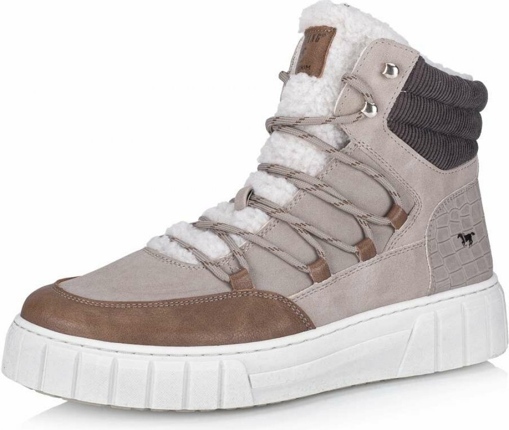 Dámské zimní boty značky MUSTANG, které Vás zahřejí na každém kroku. Kombinace barevného svršku a huňatého jazyku vytváří stylový design kotníků, které budou skvělým doplňkem k Vašim outfitům. Měkká stélka a zateplená podšívka Vás budou doprovázet celý den. Tyto kotníky jsou ideální volbou do mrazivého počasí.